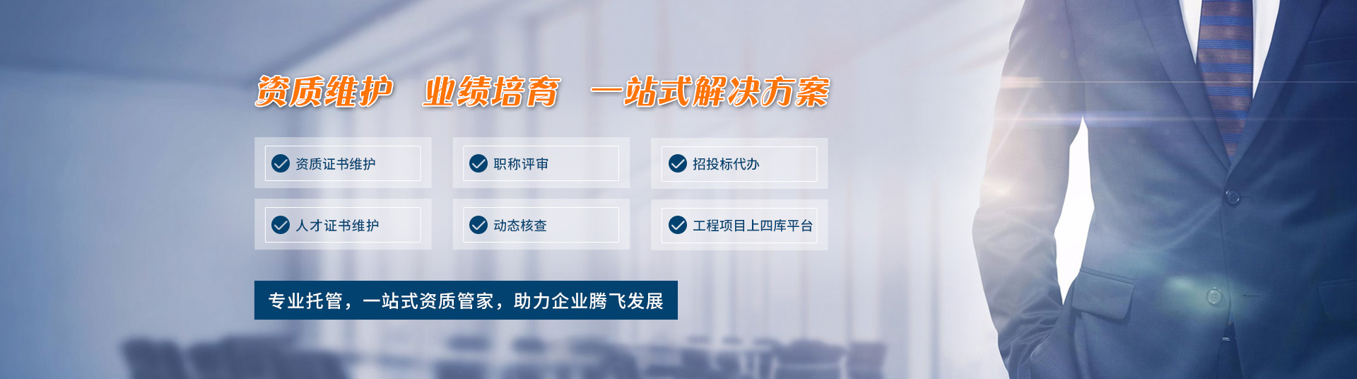 安徽萬業(yè)企業(yè)管理有限公司成立于2006年,19年來,一直致力打造為企業(yè)提供一站式企業(yè)服務(wù)平臺(tái),幫助企業(yè)解決:資質(zhì)新辦、資質(zhì)升級(jí)、資質(zhì)增項(xiàng)、資質(zhì)維護(hù)、職稱代評(píng)、項(xiàng)目上平臺(tái)、公司注冊(cè)變更、財(cái)稅代賬、財(cái)稅顧問、審計(jì)評(píng)估咨詢、工程咨詢等多種業(yè)務(wù)。公司辦公場(chǎng)...